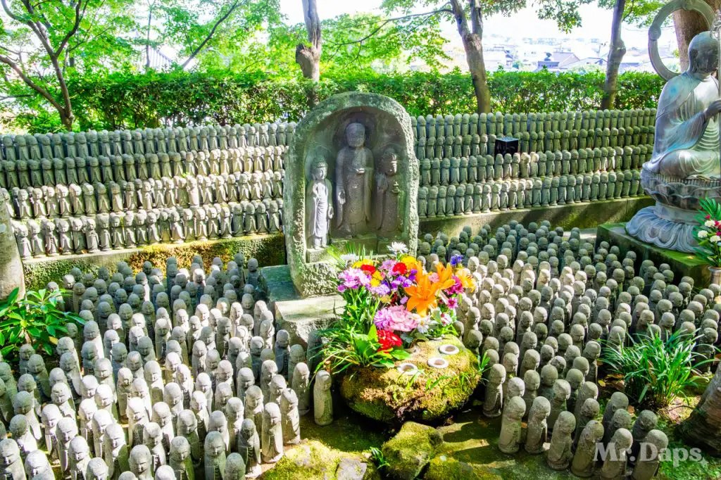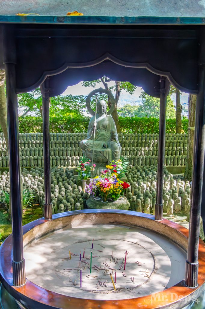 Back outside again, we started to make our way up the hill and to the temple itself. There were a few steps for this hill, but not as many as other places in Japan. About halfway up there was Jizo-do Hall. It was surrounded by Jizo statues, also called Sentai Jizo or Thousand Jizo standing in rows. Jizo is a Buddhist deity that protects children and gives prosperity to one’s descendants. After spending a few minutes here, we continued up the hill to the temple.