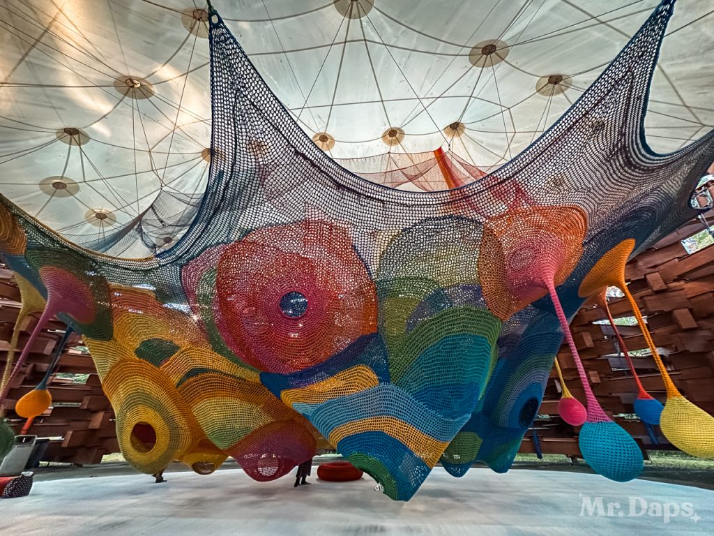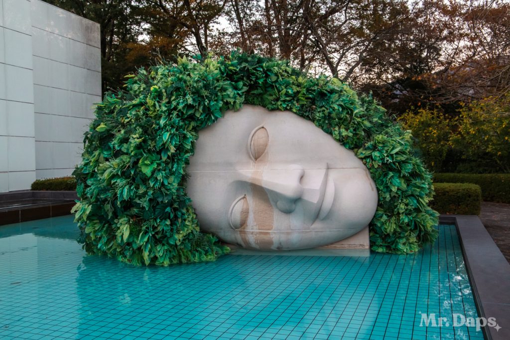 As we continued around the museum, we found more gardens, a giant hanging orb, bridges that messed with size and depth perception, and also an area dedicated to creating fun and artistic photos for Instagram. While my nephew wasn’t super interested in this area, my friend and I were and we had a blast taking pictures there. At this point, we began to pick up our pace as the sun was starting to set and the museum would soon be closed. The last main exhibit we saw was a giant head in a pool of water. By this point, it was cooling off and the area was getting dark. We also had a couple of hours to drive back to where we were staying so it seemed like a good time to head out.