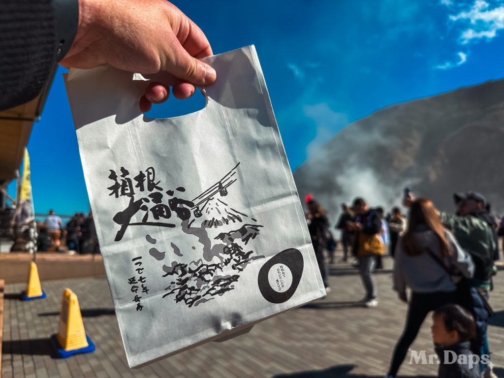 The first portion of this adventure didn’t involve actually going anywhere. Instead, it involved eating a black egg. This location is known for them and they have the sales and distribution of them down to a science. They are grouped together in bags of five for about 500 yen. How do they get black, you ask? They are cooked in natural spring water for an hour. They are then steamed for 15 minutes in steel baskets. The water contains both sulfur and iron, which is what turns the shells of the eggs black. The inside of the eggs actually look pretty much like regular eggs, which was a bit of a surprise to me! They actually tasted pretty good too, although they were VERY hot. It is thought that eating these eggs will add approximately seven years to one’s life. I haven’t seen any scientific confirmation of this but I like the idea!