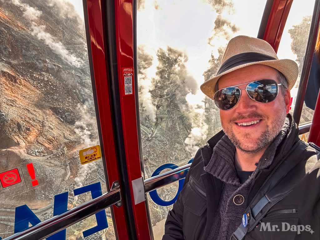 Having eaten our eggs, we spent a few minutes wandering around the top of the volcano and looking around Jigokudani,” or the Valley of Hell. It really was incredible how ridiculously close we were to the vents that had steam coming out of them. There were several times I was just a few yards away from where molten lava would be streaming out if the volcano were to erupt again. There were also signs warning that when (yes, they said when not if) an eruption happens to run inside. That safety tip noted we continued to explore and then made our way up to the ropeway station. We also took several pictures of Mount Fuji as well and the day was beautiful and made for a great view of the iconic mountain.
