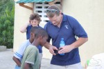 We turned off the main paved road about halfway to the orphange and the rest was all dirt… and some mud. More Haitians were walking around, some were students coming home from school as it was now late afternoon. After driving through the neighborhood for what seemed like a longer time than I remember (although now I just think Dr. Manno drives faster), we arrived at the orphange. This is a wonderful bastion of hope in the middle of a very hopeless looking neighborhood. The gates were opened and our two vans pulled into the gravel courtyard. As with everything today, I noticed many things that were similar to last year and some difference. The first difference: some of the kids were riding bikes. They were having a blast riding around the two courtyards in front of the orphanage and school. Second, I clearly recognized some of the kids and they had grown! The little guy who was scared of Americans and cried when we got near last year was now quite confident around this much larger group. There were also some new ones who clearly had been living a rough life. While you just want to love on them and make them all smile, for some that just isn’t something that’s going to happen at this point. One little girl in particular had a hand deformity. Because of it, she apparently had been treated as an outcast. She was a sweet little girl but there was no smile… she just watched and absorbed what was going on. Hopefully this will change someday.
