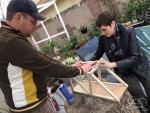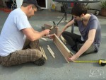 Engine on its way, it was time to get building the bridge. We really didn’t have ALL the tools to make it perfectly but we did our best. Using iPhones, measuring tape, a circular saw, and some dumb luck, we were able to get the wood cut into appropriate shapes for creating our bridge. This process also included a run back to Home Depot for more wood. Finally with all of our pieces cut correctly (more or less), it was time to start the assembly process.