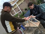 To assemble the bridge, we used a combination of both nails and a very strong wood glue. Together, they ended up holding the bridge together pretty well. It was a bit complicated holding it all together for the wood to dry without clamps but we made do with some bricks. The assembly of the bridge took much less time than prepping the wood. It also was a lot more fun as we could actually see our dream becoming a reality.