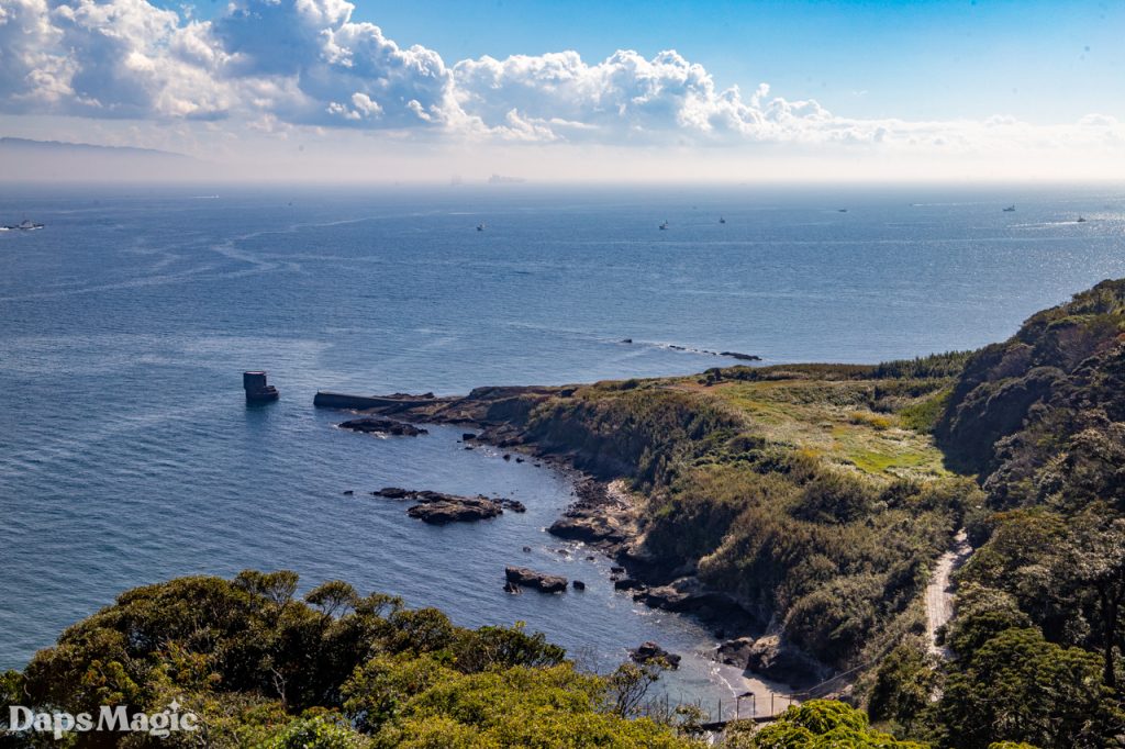 We arrived at Kannonzaki and parked in a small parking lot near a little bay. There were rescue workers that were doing some sort of a drill with what looked to be a fireboat out off the point. It made for an interesting experience as I really hadn’t heard anyone yell in Japan… until then. The day was perfect for swimming so it was probably a good day for a drill I suppose.