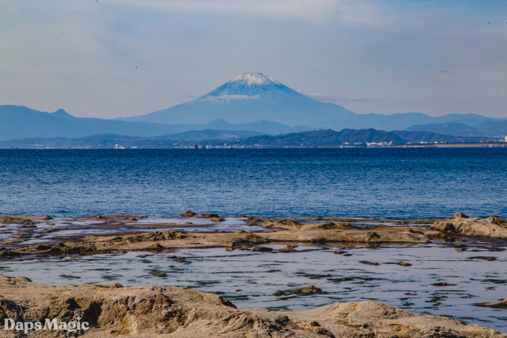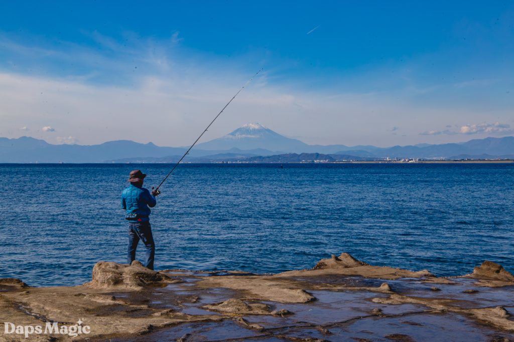 Back outside, we returned to the rocky coast where there were plenty of fishermen and also tourists enjoying the beautiful day and the gorgeous view of Mount Fuji. My nephews enjoyed exploring the tidal pools as they found fish and crabs. I enjoyed taking pictures of the area from different angles. It was about this time, we started realizing that we were hungry and had quite the climb ahead of us. After a few more pictures of Mount Fuji, it was time for the climb.