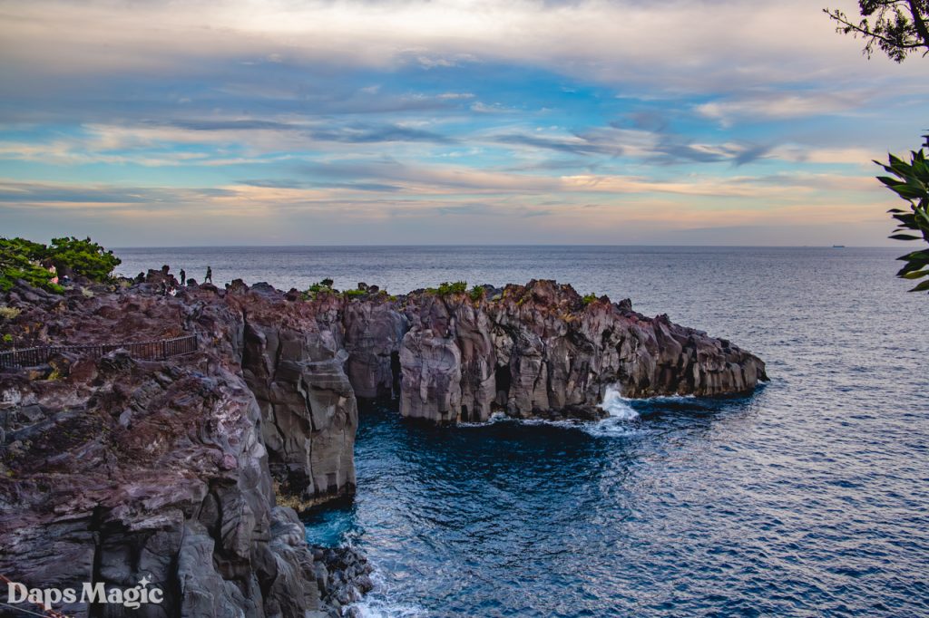 Back on the ground, we made our way through the gardens and then back down the hill (of course taking more pictures along the way). Finally, we were back in the car and ready to go find some food. This ended up not being as easy as we thought it would be, ultimately leading to us enjoying lunch from 7-11 (thank heavens for 7-11 in Japan!). This ended the first part of our adventure for the day, an adventure that we kept adding to. There was plenty of day left so we figured, why not!? We did have a few options, however. The original idea was if there was enough time to visit an ancient Japanese village and see more views of Mount Fuji. However, time and weather didn’t seem to be in our favor with this. This led to my sister coming up with a unique and beautiful idea that I don’t think was originally on our list of adventures we wanted to experience. She suggested driving down the coast to the Jogasaki Coast on the Izu Peninsula. This sounded like it could be cool, so with 7-11 in hand, we started the drive!