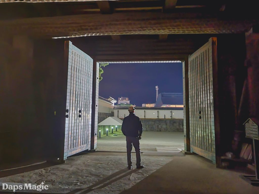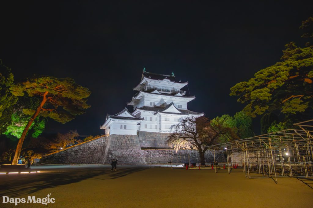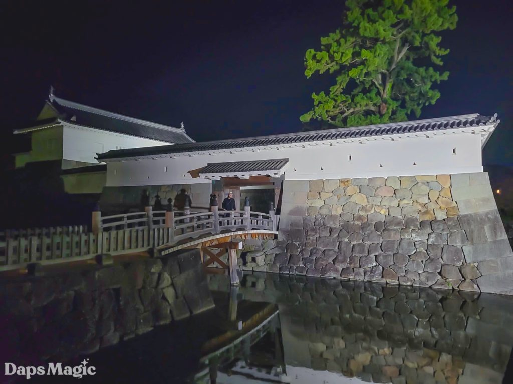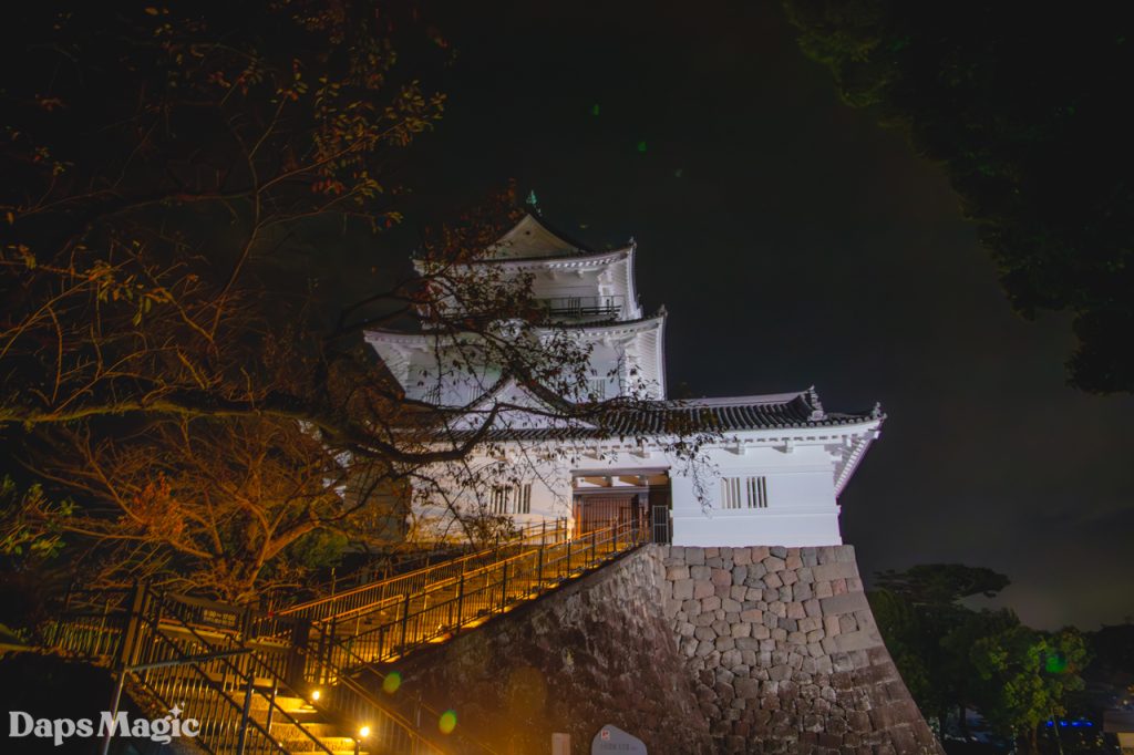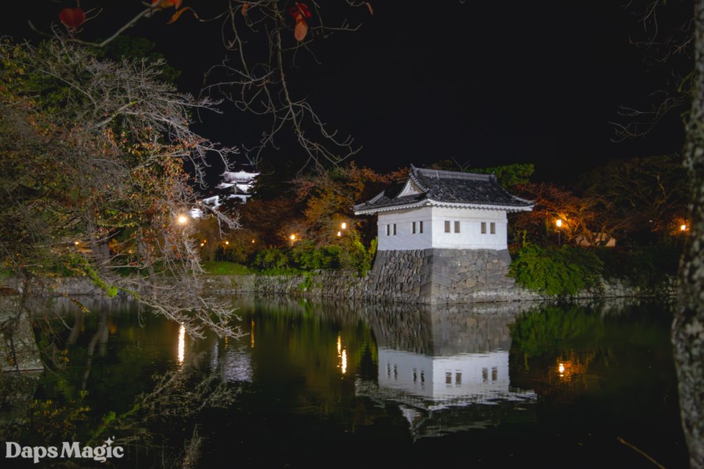 The first part of the drive back wasn’t dark, and this was a good thing. This was the part of the drive that was precarious and close to the edge. I could just imagine cars going off the edge of the road and never being heard of again. Thankfully, nothing like that happened for us. We crossed bridges, went through tunnels, and enjoyed seeing the beautiful reflections on the ocean from cities across the way as we continued back toward “home.” For dinner, we stopped at a McDonald’s and got it to go. This was one of two McDonald’s experiences we had on this trip. Neither of them blew me away. Unlike my experience in France where I thought McDonald’s was better than in the United States, this was not the same. In fact, it might have been one of the only things I didn’t think was better in Japan versus the United States in terms of food. However, it did the trick and we were fed and continued the drive. As we drove, we talked about the day’s adventures. At some point, we brought up the idea of stopping by Odawara Castle.