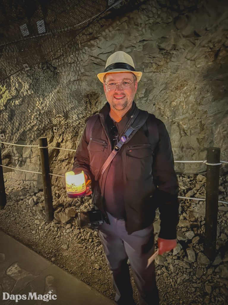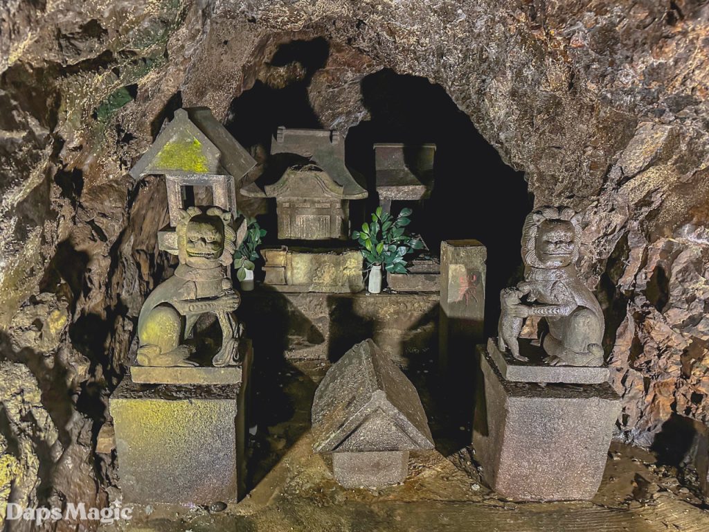 Eventually, we left the beautiful sunny day and entered the caves, known as the Iwaya Caves. There were plenty of places for photos here as well, but very different ones. We paid a small fee to enter the tunnel and began our exploration inside the island. As we made our way further into the darkness of the first caves, we came upon a small booth where candles (or battery-powered candles for the young ones) were handed out. On the candle was a picture of Benzaiten. These were originally part of a traditional pilgrimage but now appeared to be mostly for tourists. We continued deeper into the island. The ceiling of the tunnel got lower and lower the further we got in. This definitely had me stooping quite a bit and I was glad that this wasn’t a super long tunnel. The end of the tunnel had Buddhist shrines and a statue of the island’s goddesses. The second tunnel ended with a statue of the sun goddess Amaterasu, which is believed to be a direct ancestor of the current emperor. The experience felt like it could lead to an Indiana Jones-type adventure.