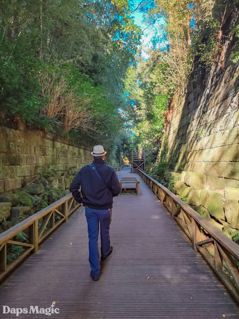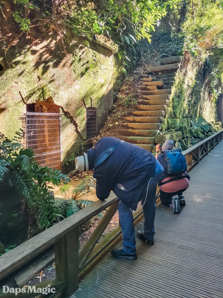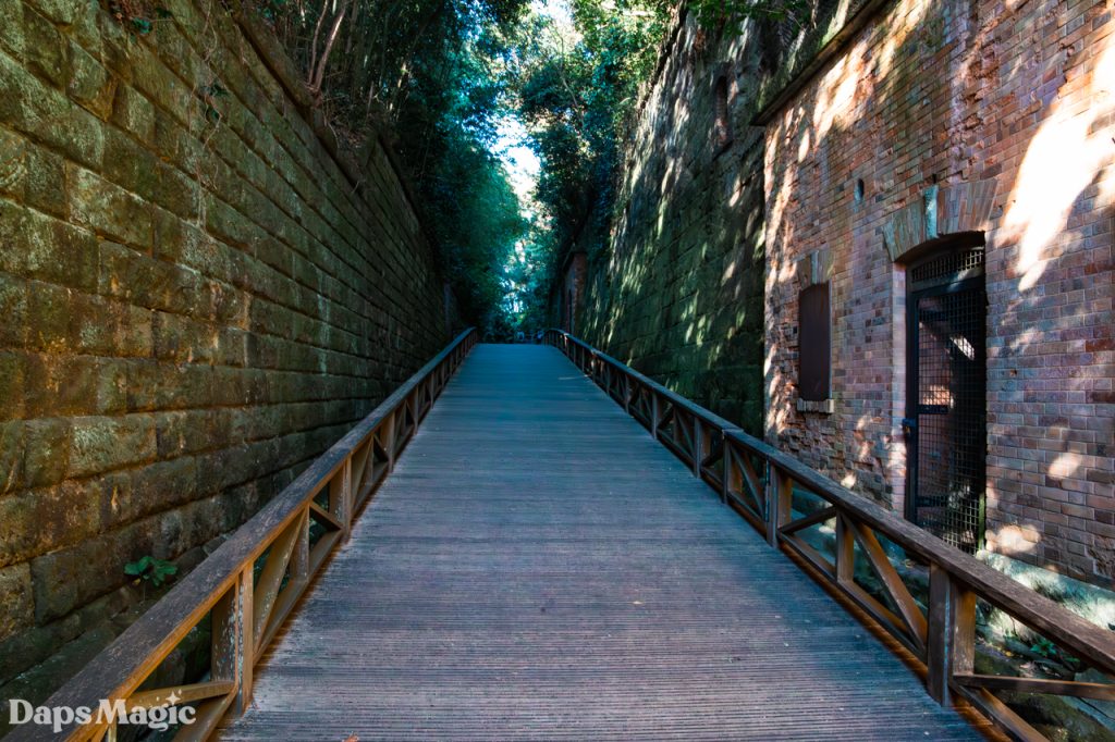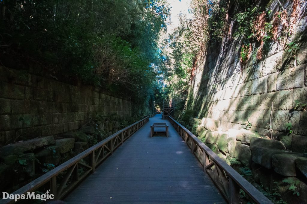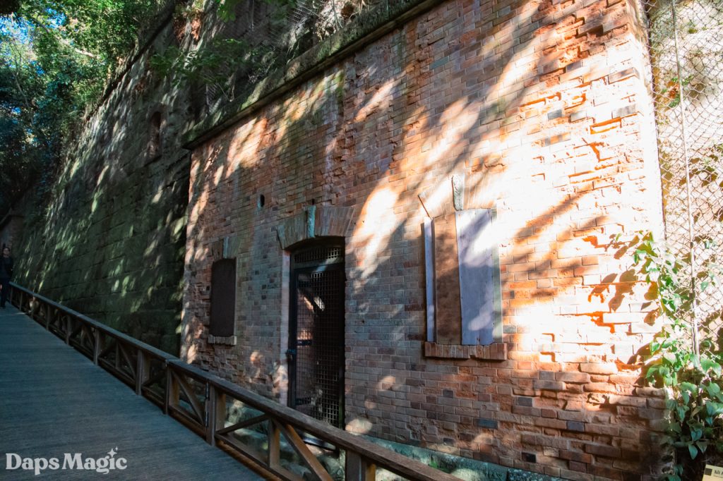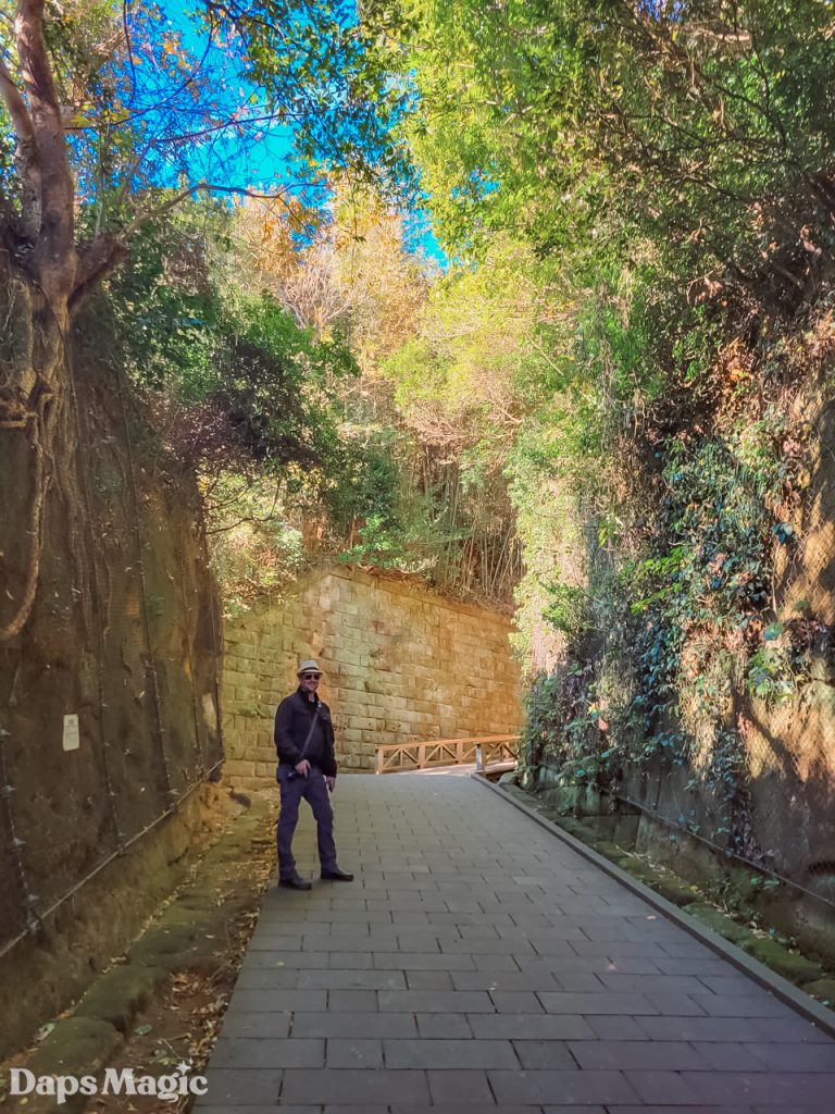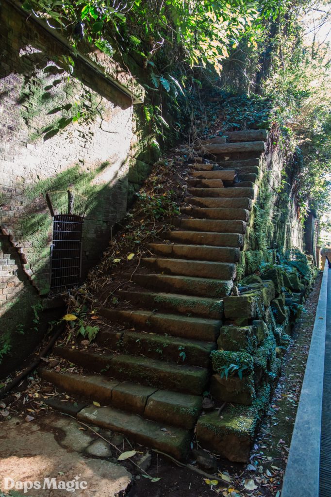 It didn’t take long at all to arrive on the island. The day was completely lovely. Within minutes of disembarking from the boat, we found ourselves climbing up a trail along the side and around the island. It isn’t a huge island, however, it is a natural island. From what I have seen, it might be the only natural island in Tokyo Harbor. The rest are all made of reclaimed land. Where this island isn’t a huge one, it does seem to have a lot of stories that have been lived on it. Not only is there the one that led to it being called Monkey Island. There are also plenty of old abandoned fortifications found throughout the island. They appeared to come from different eras. Since the early 1600’s during the Tokugawa Shogunate through World War II, the island was heavily fortified. Walking up the side of the island, it was fascinating to see different old fortifications from different times.