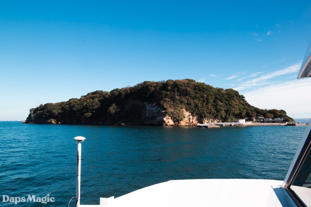 The next adventure while in Japan was a second try to go to Sarushima Island. Thankfully, this time was successful. The wind had died down and the sun was out in force as we made our way back to the ferry terminal to take the quick ride out to this island. I should say, it wasn’t truly a full-on ferry. It was more of a catamaran that would be perhaps used for whale watching in the United States. It did have limited indoor seating but there were places to ride the boat both on the main deck and also upstairs on the top deck. Apparently, on some days this could be a bit of an adventure if the water was choppy. My sister told me about a recent adventure where waves were splashing over the front of the boat and soaking people on the second level! Thankfully, the conditions were pretty calm for our cruise.
