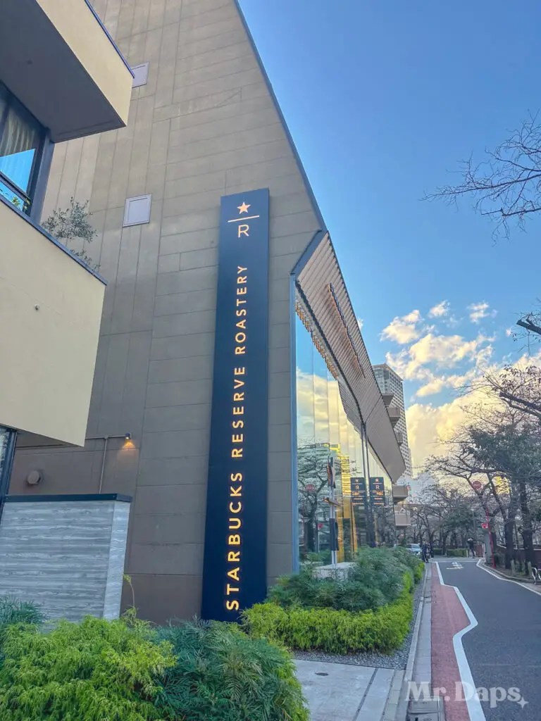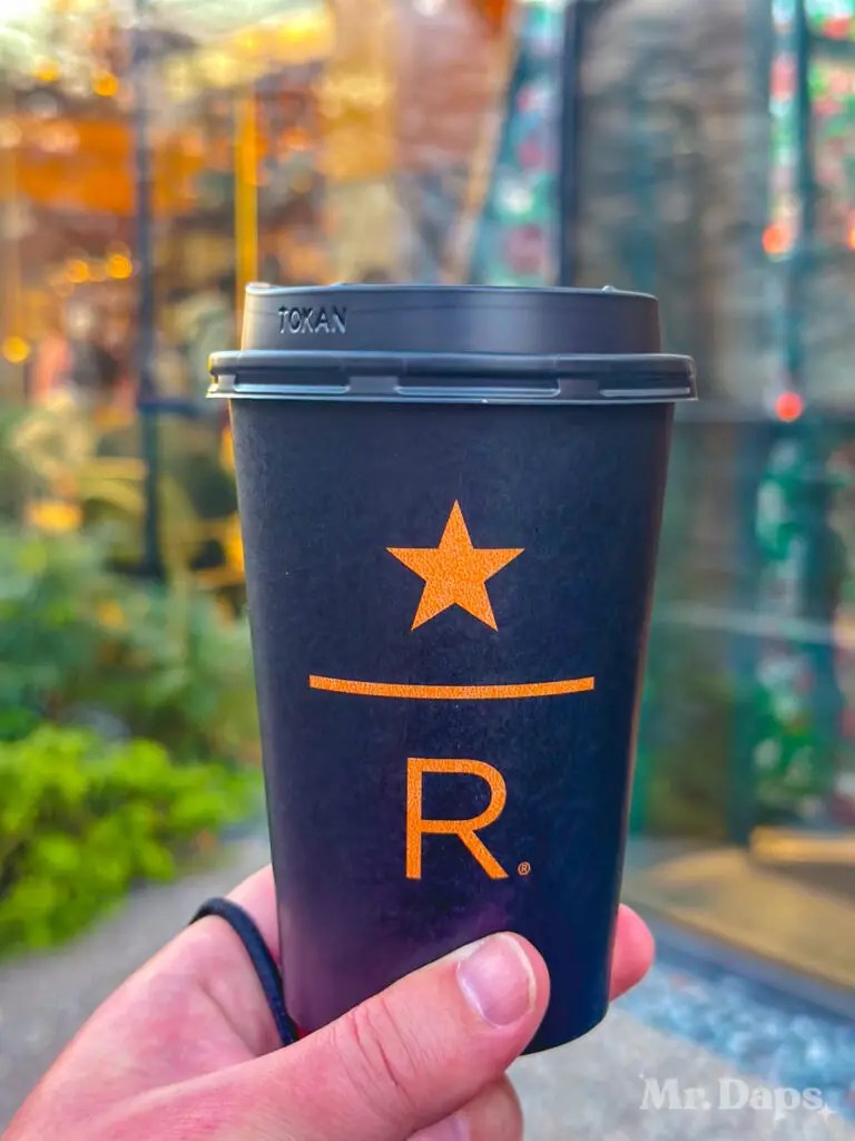 My initial thought was that I loved the signage around the outside. It felt like a fancy Starbucks and I really loved the vibe. I loved the huge windows and the hanging plants. I also enjoyed having other Starbucks fans around me. As I took a few pictures, I realized the sun was going down. Having been in Japan long enough, I knew that once the sun decided to go down… things got dark fast! With that in mind, I headed inside.