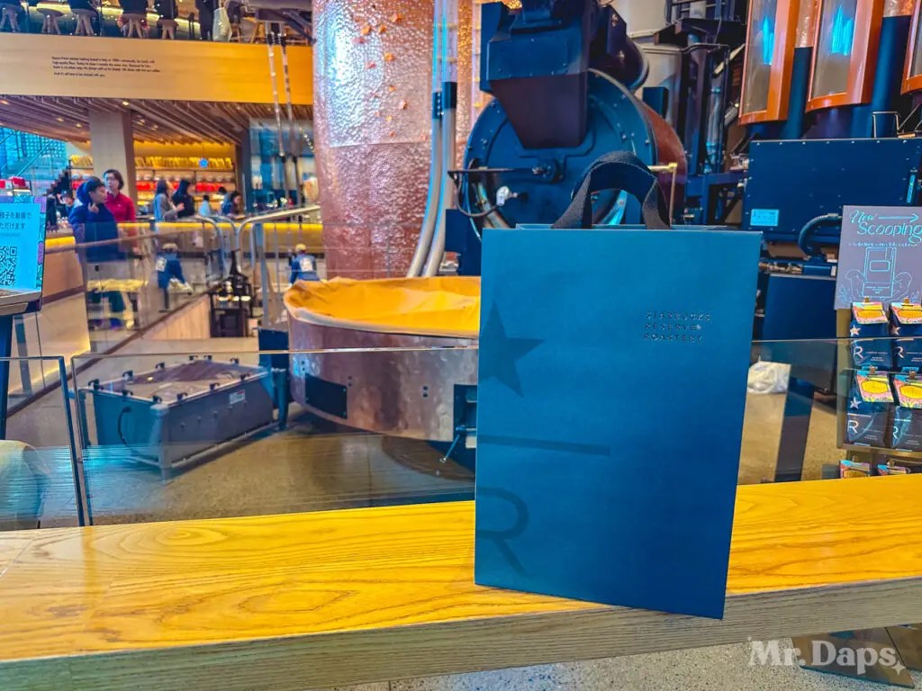 After taking a few photos, I made my way to the right where the merchandise was. I wish I had taken more photos of the merchandise as it was awesome. There were mugs, cups, shirts, stickers, books, and more. All of them had really classy designs. I could have spent entirely too much money there as everything was beautiful. Finally, I found a couple of mugs and some stickers for myself and some friends. The bag they put everything in was also incredible. It was made of very nice thick paper and had cloth handles. It also had Starbucks Reserve Roastery embossed into it, along with the logo as well.