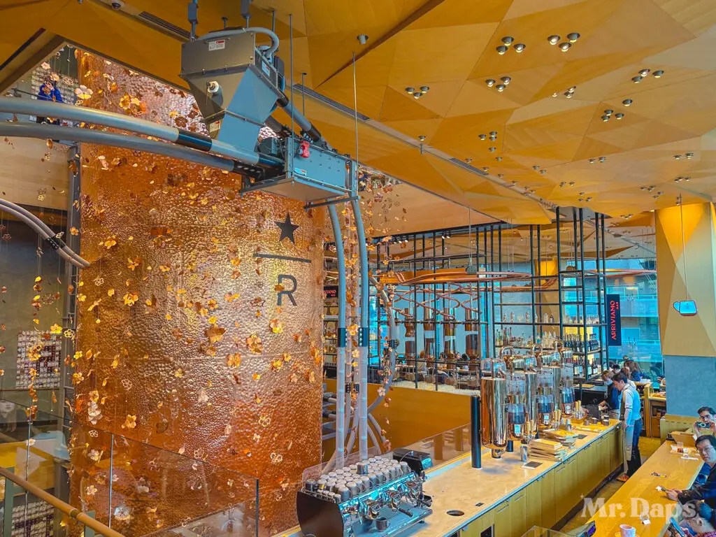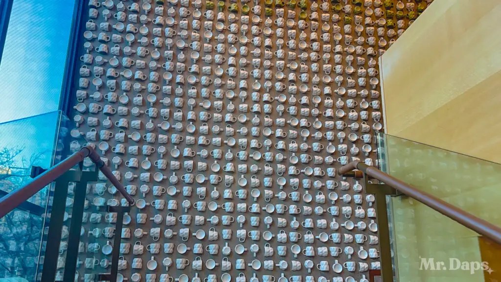 As I made my way up the stairs to the next floor, I fell in love with the wall in front of me. It was made of mugs that were embedded into the wall! As I explored I also found an explanation of the Starbucks Reserve Roasteries. It said: