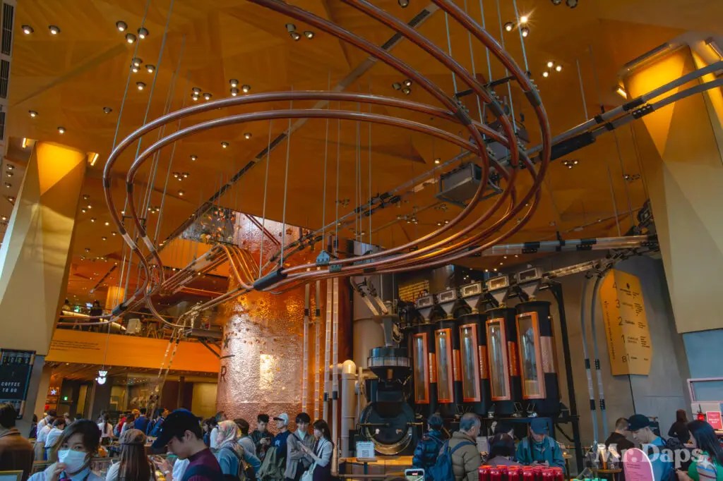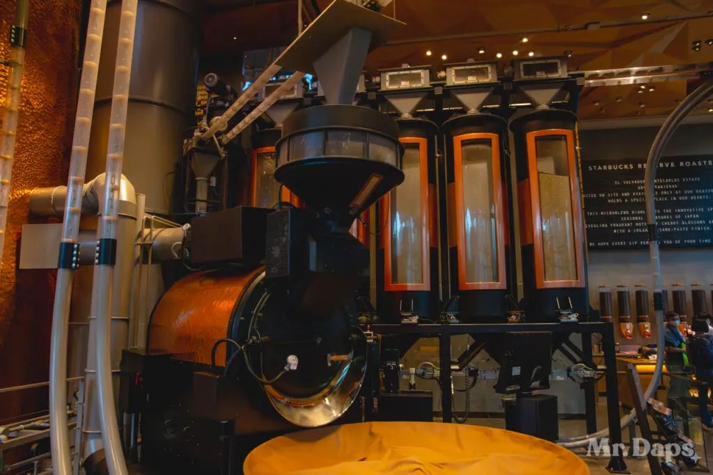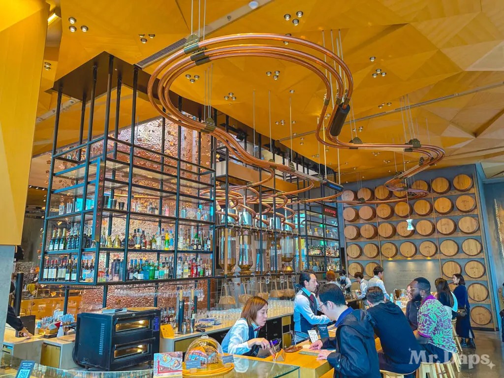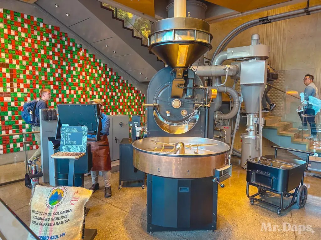 I thought this Starbucks was cool from the outside, the inside was even more awesome. I walked inside and immediately noticed how big it felt. There also was a huge copper cask in front of me, presumably for coffee beans. At that moment, I really wished I knew more about the coffee roasting process beyond a quick explanation I had once been given in Haiti and some books I had read. I definitely didn’t feel proficient enough in the process to be able to recognize all of the equipment or to know what it did. I still loved what I was seeing, though!