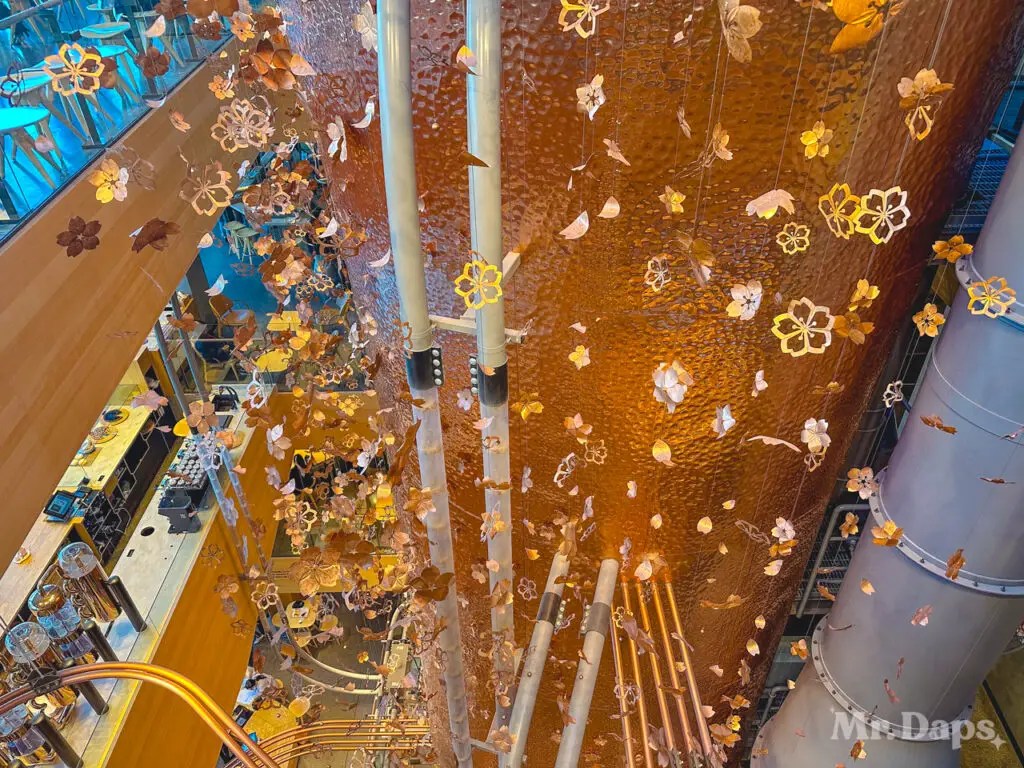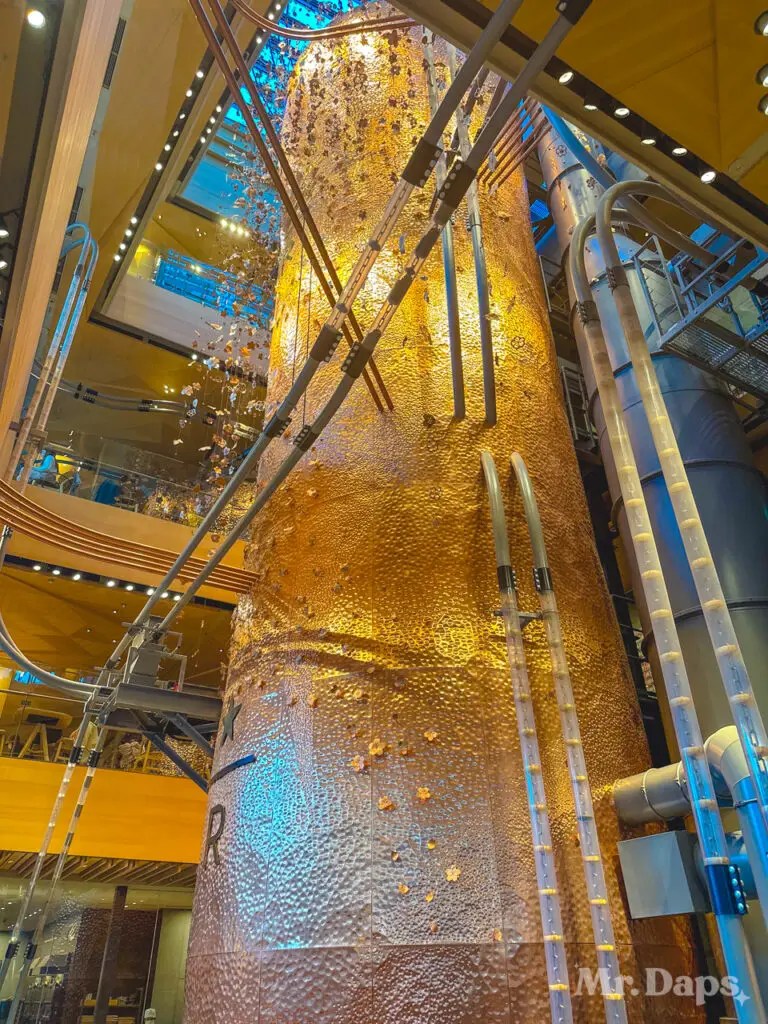 As I continued to climb the stairs, I found more offerings found throughout the building. This included a bar on the third floor, a Teavana bar on the second floor, some beautiful places to sit, and some lovely decorations. I also was smitten with the giant copper cask that was almost as tall as the building. It could be seen on each of the first three floors. There were also decorations hanging around it. I loved it.