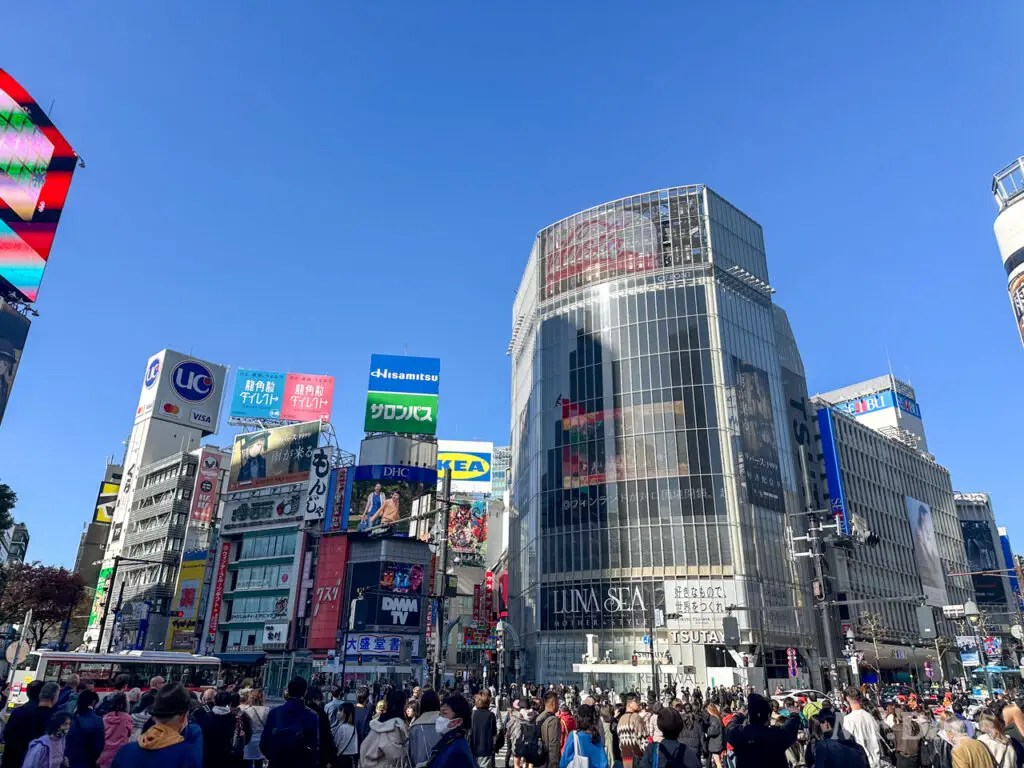 My first destination was Shibuya Crossing. I had really wanted to check out the Starbucks that overlooks the crossing but it was closed when I was visiting. That was ok though! I soon was off the train and pulling my suitcase through what felt almost more like a mall than a train station. Soon, I was outside near Shibuya Crossing. There was a lot of construction happening but it didn’t take me long to figure out where I was going.