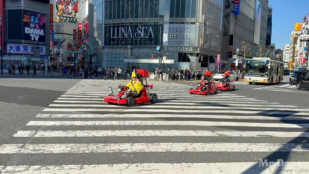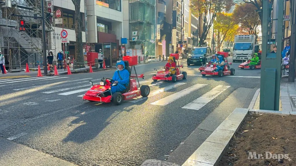 While I was enjoying the area, I noticed how the buildings with their massive LED screens reminded me a bit of New York’s Times Square. I also saw the Mario Kart cars tour through the intersection as well. They swarmed through the intersection and the drivers waved at tourists who waved back. My first thought was how unsafe they looked with how low they were to the ground.